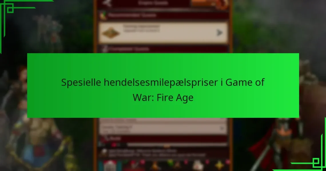 Spesielle hendelses milepælspriser i Game of War: Fire Age gir spillerne verdifulle belønninger for å oppnå spesifikke mål under tidsbegrensede hendelser. Ved å delta aktivt og fullføre utfordringer kan spillerne tjene disse prisene, som forbedrer spillopplevelsen og strategien. Tilgjengeligheten og kostnaden for milepælspriser kan variere, noe som gjør det viktig for spillerne å vurdere alternativene sine når de jakter på disse belønningene. Hva er spesielle hendelses milepælspriser i Game of War: Fire Age? Spesielle hendelses milepælspriser i Game of War: Fire Age er belønninger spillerne tjener ved å nå spesifikke mål under tidsbegrensede hendelser. Disse prisene forbedrer spillopplevelsen ved å…